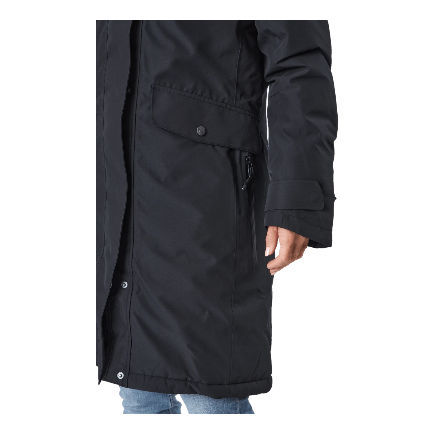 Fabriqué en polyester doux avec une finition mate. Erika a une capuche ajustable avec bordure en fausse fourrure amovible et un col haut. Fermeture éclair à double sens avec rabat de protection contre les tempêtes, deux poches avant avec boutons-pression et deux poches avec fermetures éclair résistantes à l’eau. Deux poches intérieures dont une zippée. L’ourlet, la taille, les poignets et la capuche peuvent tous être ajustés selon les besoins. Poignets intérieurs côtelés avec trous pour les pouces. Les détails réfléchissants incluent le nom et le logo Didriksons, la sangle dans la poche avant et les tirettes de fermeture éclair. L’isolation est composée à 100 % de fibres recyclées et la doublure a été teinte à l’aide de Solution Dye, une technique de teinture qui permet d’économiser jusqu’à 80 % d’eau par rapport à un tissu polyester/polyamide teint de manière conventionnelle. Pour les coloris noir, bleu nuit foncé et vert foncé, le tissu extérieur est également teint dans la masse. Finition déperlante sans PFC.