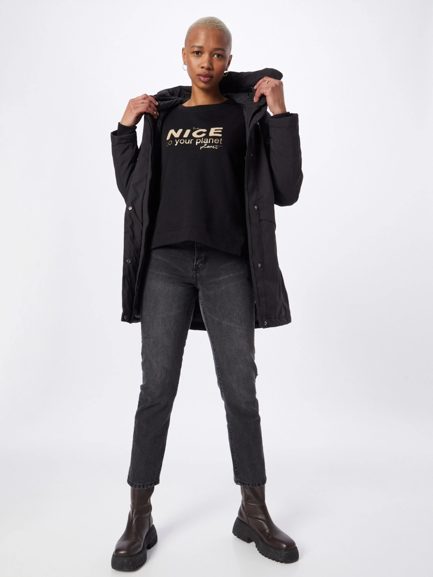 Couleur unieFerme jusqu’en hautPoche intérieureFermeture éclaire doubleBoutonnière avec boutons pressionFermeture éclair masquéePoche à rabat / à patteBroderie de l’étiquetteCoutures ton sur tonTissu lisseAvec capucheDoublure chaudeFermeture à glissière