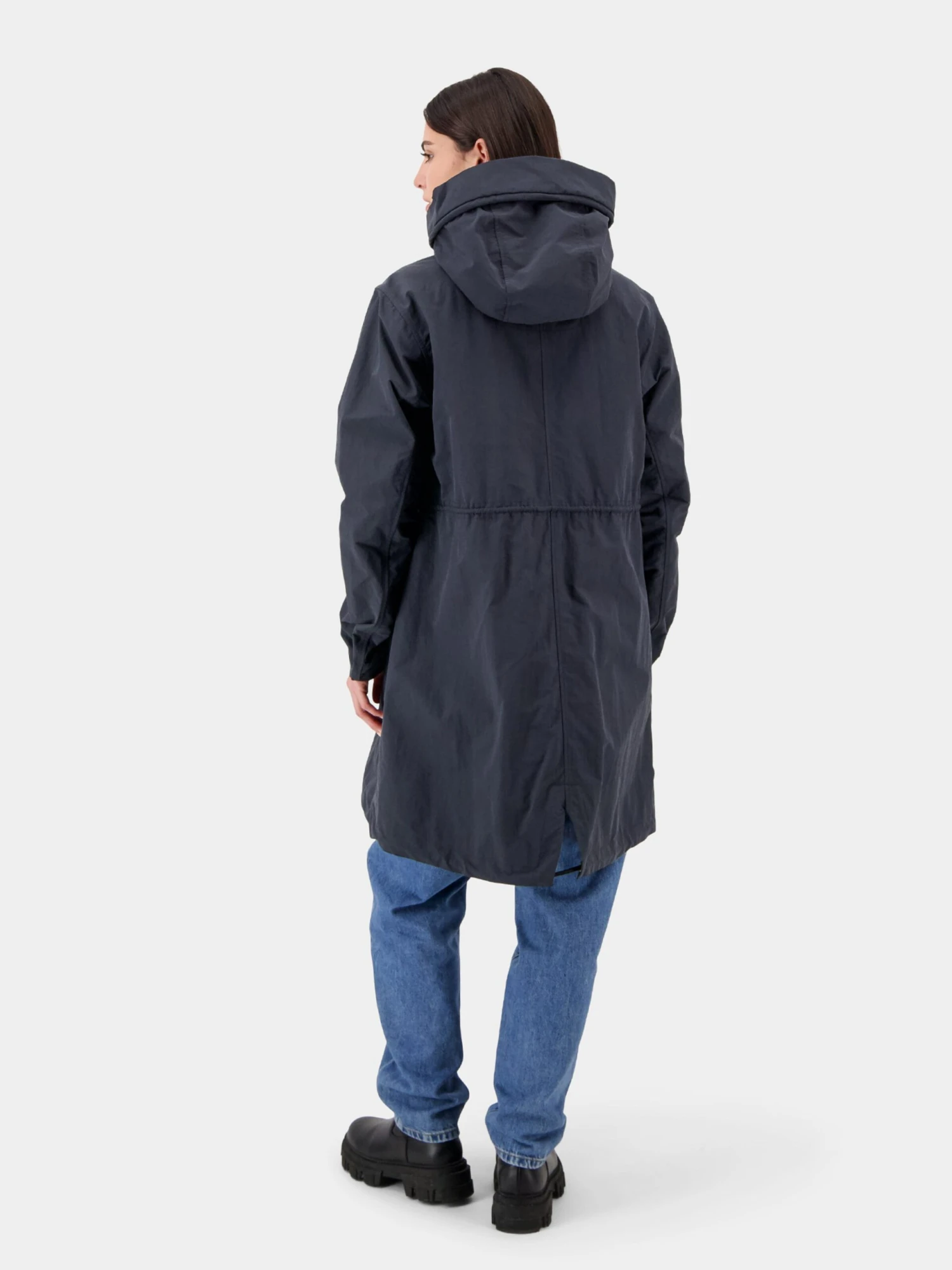 Couleur unieAnorakManchettes droitesCapuche avec col montantAvec ceinture / cordonFente dorsaleFermeture éclair masquéePoche à rabat / à patteLégèrement doubléFermeture à glissière