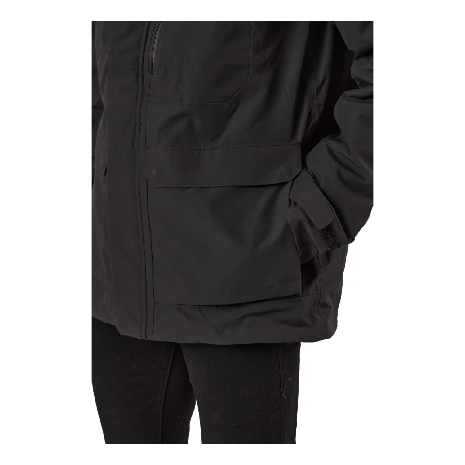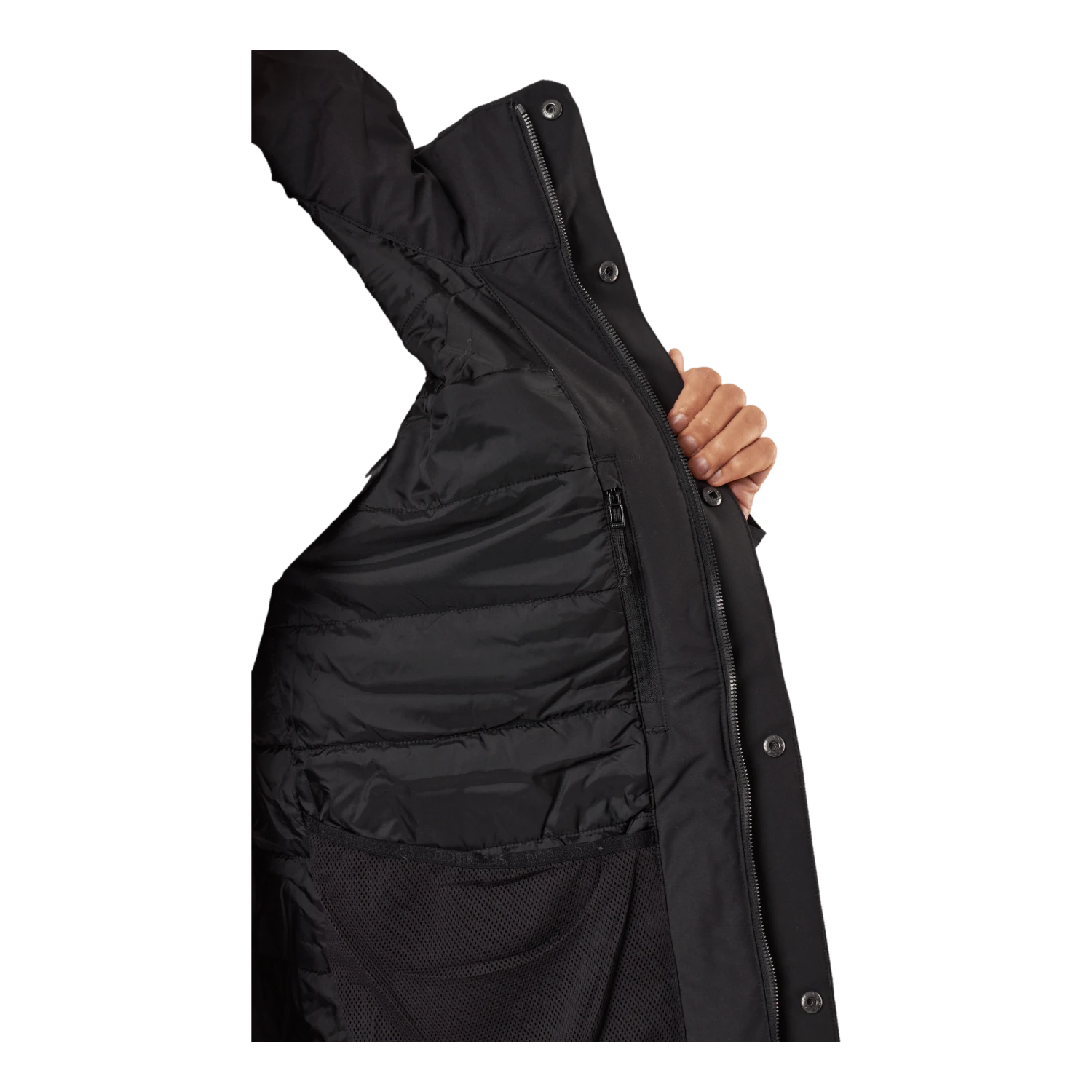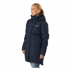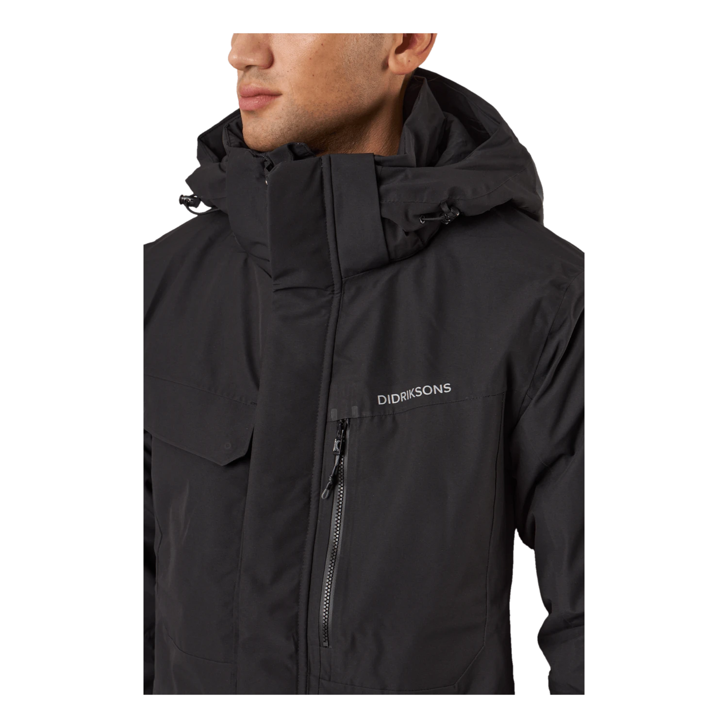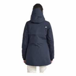 Nom et logo de Didrikson imprimés réfléchissants sur la poitrine et sur une épaule dans le dos. Tirette de zip réfléchissante. Il y a quatre poches sur le devant, dont deux sont accessibles des deux côtés. Une poche a une fermeture éclair résistante à l’eau, tandis que les autres ont des boutons-pression. Poche intérieure avec fermeture éclair et deux poches intérieures en filet. Zip avant flexible à double sens sur toute la longueur avec rabat de protection contre les tempêtes. La veste peut être ajustée à l’aide d’un cordon de serrage à l’ourlet et les poignets peuvent également être ajustés. Les manches ont des poignets élastiqués avec des trous pour les pouces. L’isolation est composée à 100 % de fibres recyclées et la doublure a été teinte à l’aide de Solution Dye, une technique de teinture qui permet d’économiser jusqu’à 80 % d’eau par rapport à un tissu polyester/polyamide teint de manière conventionnelle. Pour les coloris noir, bleu nuit foncé et vert foncé, le tissu extérieur est également teint dans la masse. Finition déperlante sans PFC.
