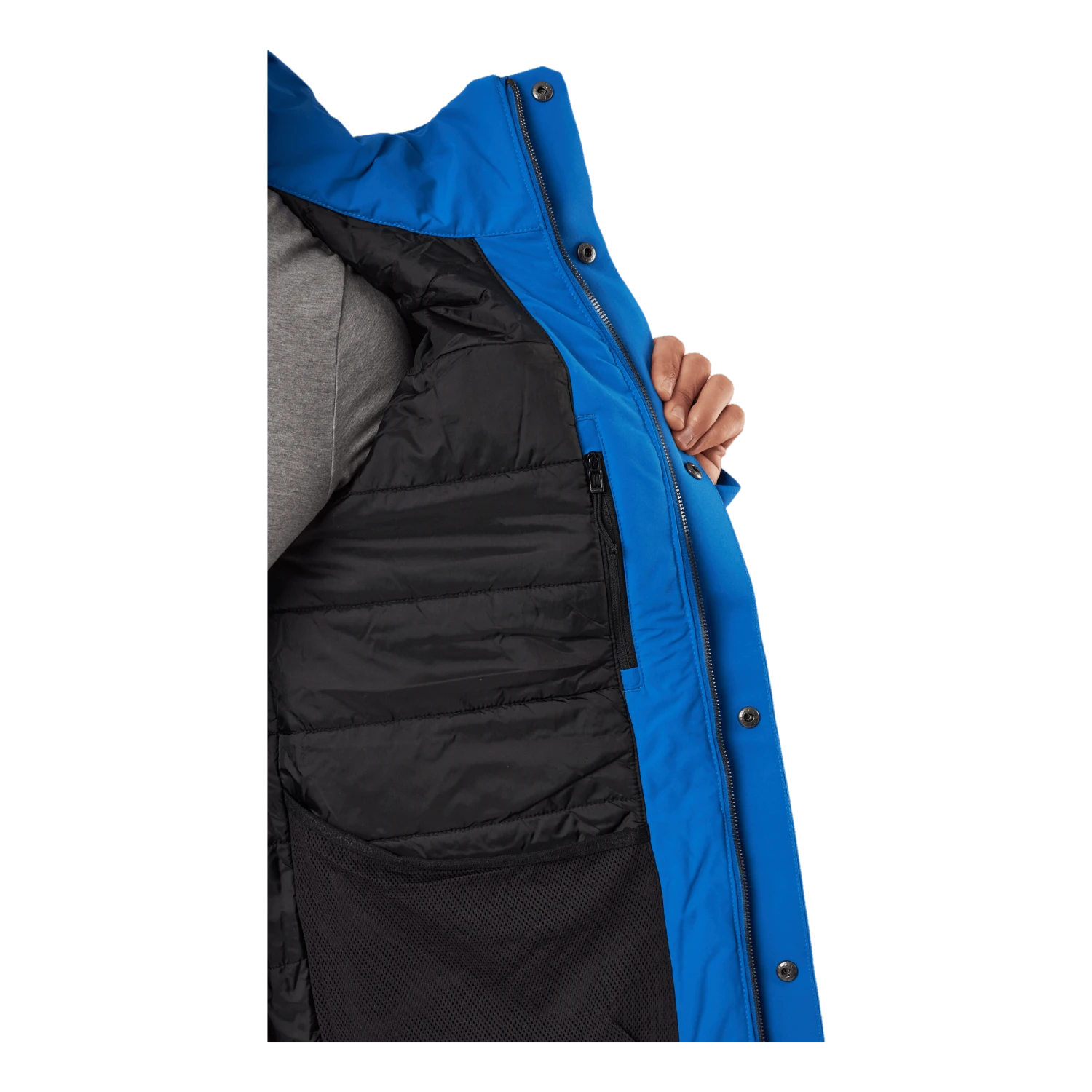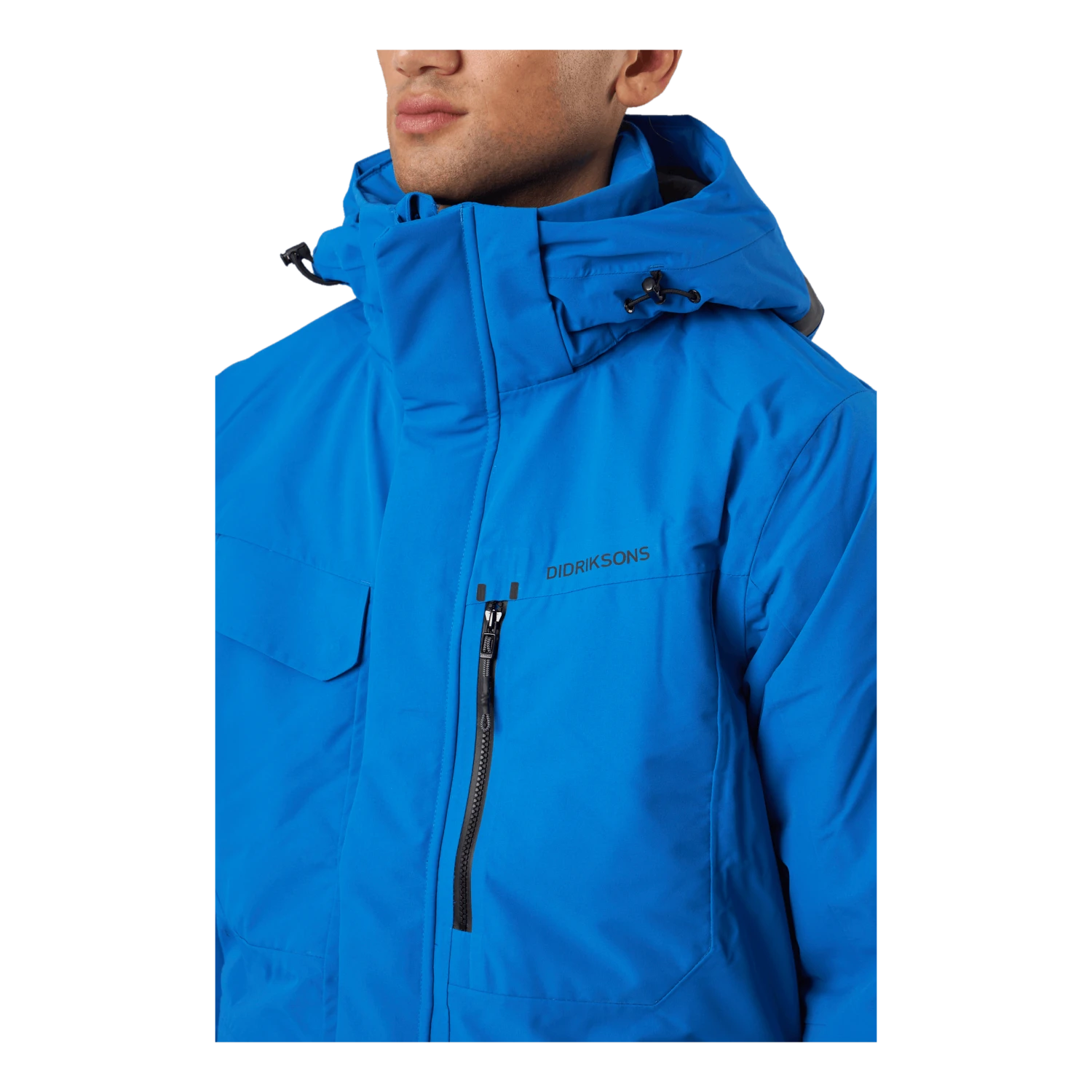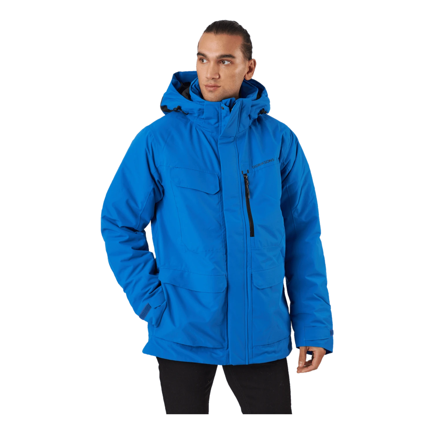 Nom et logo de Didrikson imprimés réfléchissants sur la poitrine et sur une épaule dans le dos. Tirette de zip réfléchissante. Il y a quatre poches sur le devant, dont deux sont accessibles des deux côtés. Une poche a une fermeture éclair résistante à l’eau, tandis que les autres ont des boutons-pression. Poche intérieure avec fermeture éclair et deux poches intérieures en filet. Zip avant flexible à double sens sur toute la longueur avec rabat de protection contre les tempêtes. La veste peut être ajustée à l’aide d’un cordon de serrage à l’ourlet et les poignets peuvent également être ajustés. Les manches ont des poignets élastiqués avec des trous pour les pouces. L’isolation est composée à 100 % de fibres recyclées et la doublure a été teinte à l’aide de Solution Dye, une technique de teinture qui permet d’économiser jusqu’à 80 % d’eau par rapport à un tissu polyester/polyamide teint de manière conventionnelle. Pour les coloris noir, bleu nuit foncé et vert foncé, le tissu extérieur est également teint dans la masse. Finition déperlante sans PFC.