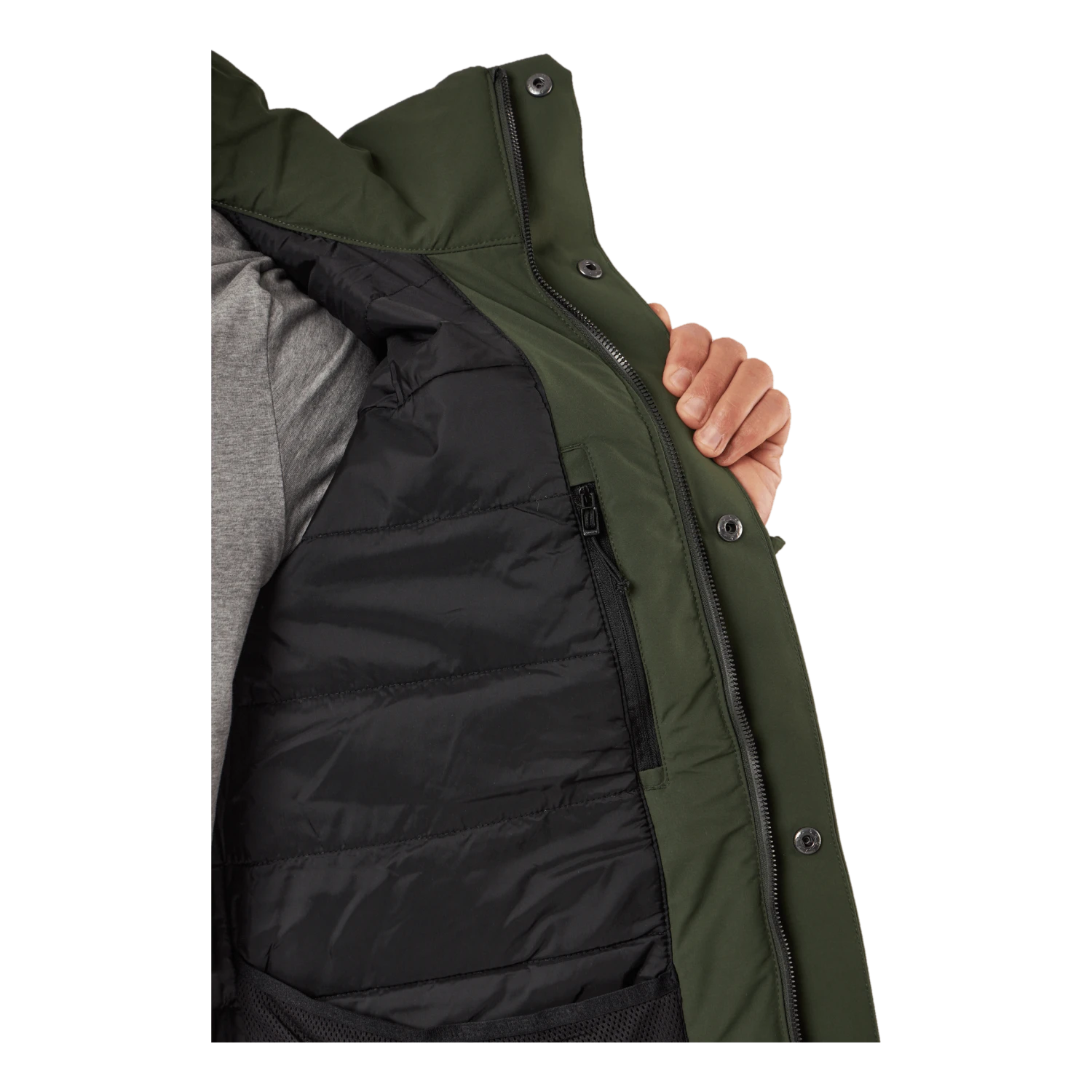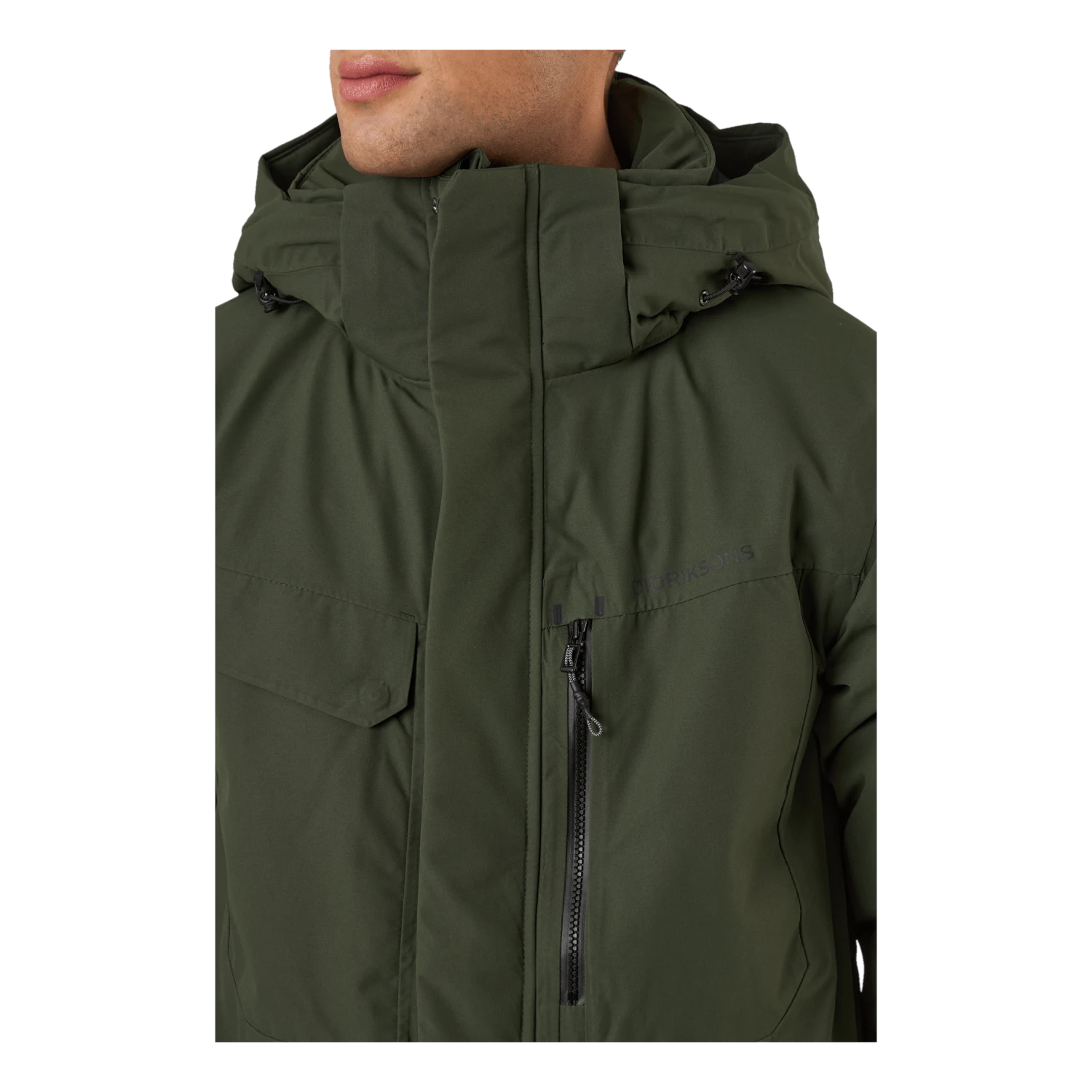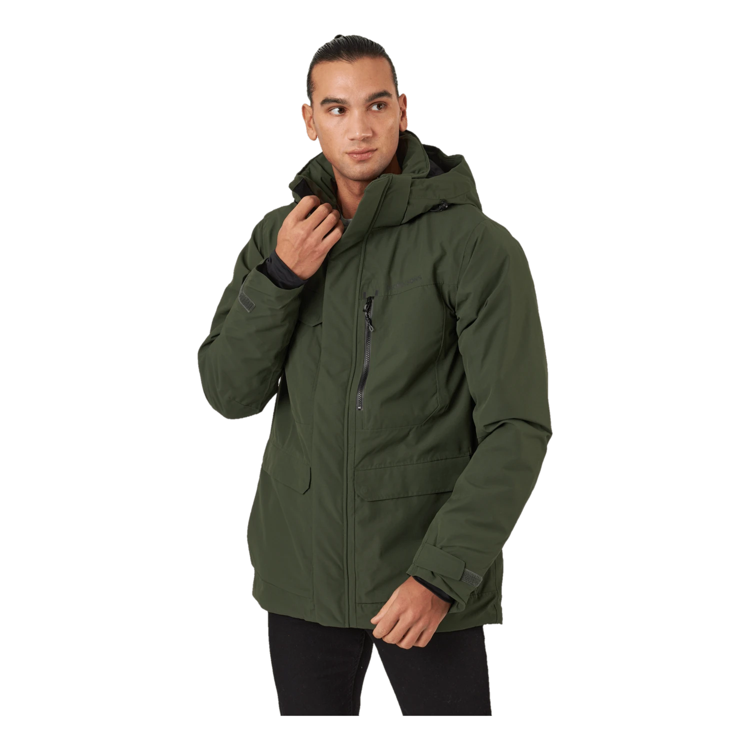 Nom et logo de Didrikson imprimés réfléchissants sur la poitrine et sur une épaule dans le dos. Tirette de zip réfléchissante. Il y a quatre poches sur le devant, dont deux sont accessibles des deux côtés. Une poche a une fermeture éclair résistante à l’eau, tandis que les autres ont des boutons-pression. Poche intérieure avec fermeture éclair et deux poches intérieures en filet. Zip avant flexible à double sens sur toute la longueur avec rabat de protection contre les tempêtes. La veste peut être ajustée à l’aide d’un cordon de serrage à l’ourlet et les poignets peuvent également être ajustés. Les manches ont des poignets élastiqués avec des trous pour les pouces. L’isolation est composée à 100 % de fibres recyclées et la doublure a été teinte à l’aide de Solution Dye, une technique de teinture qui permet d’économiser jusqu’à 80 % d’eau par rapport à un tissu polyester/polyamide teint de manière conventionnelle. Pour les coloris noir, bleu nuit foncé et vert foncé, le tissu extérieur est également teint dans la masse. Finition déperlante sans PFC.